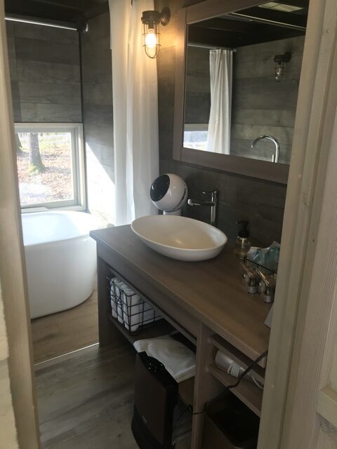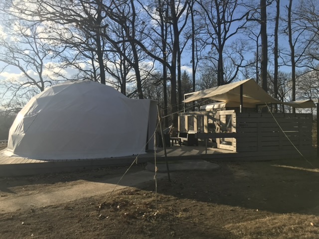 まず、上の写真のように、宿泊する部屋はドーム型のテントとお風呂や食事をする場所がある離れが1セットになっています。