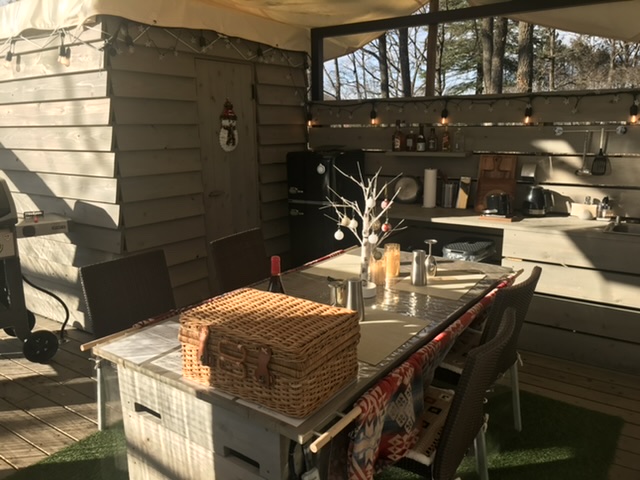 ダイニングテーブルがあり、ここでバーベキューをして食べる事ができます。
