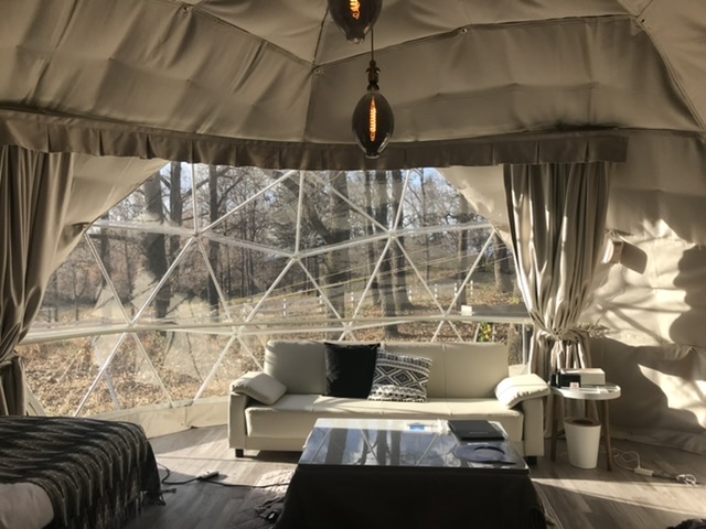 ドーム型テントの離れの内部