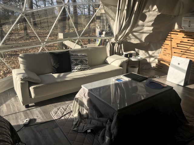 それに、コタツと空気清浄機&加湿器もあるので、グランピングの中でも普通のホテルに近い快適さです。