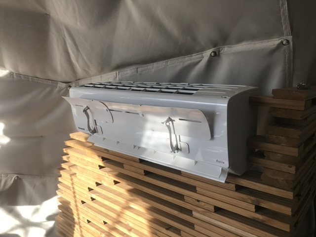 一般的なテントの場合冬は寒さとの戦いですが、こちらはエアコンが付いているので快適。