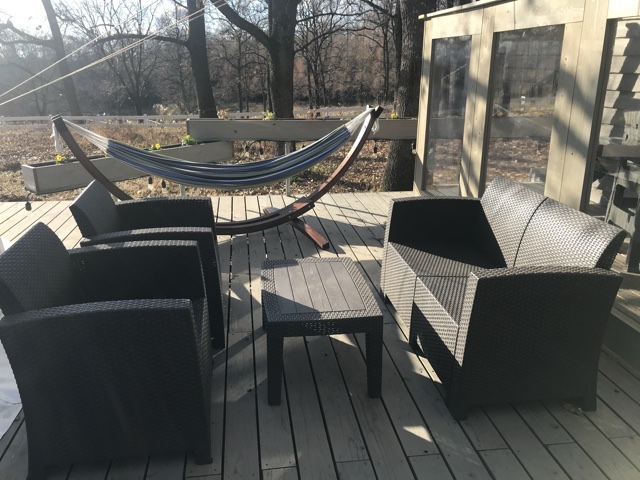 その間にはテーブルセットとハンモックがあります。