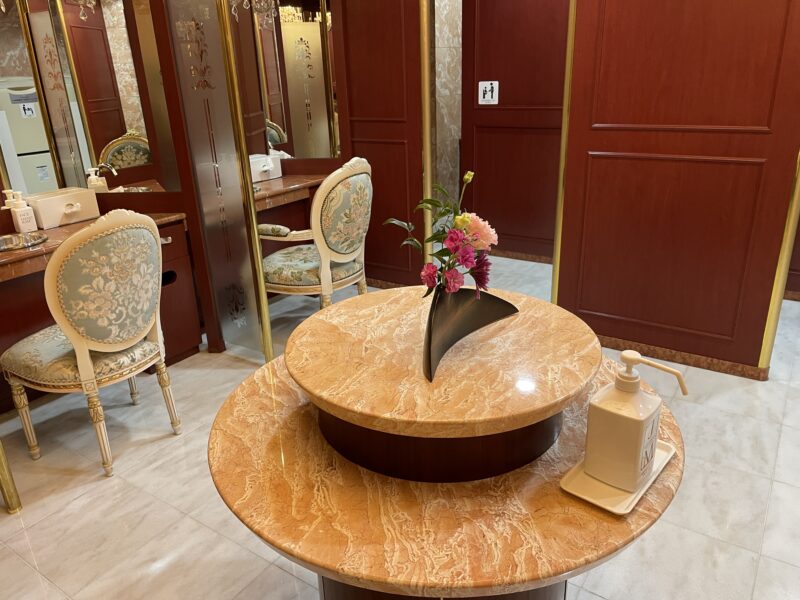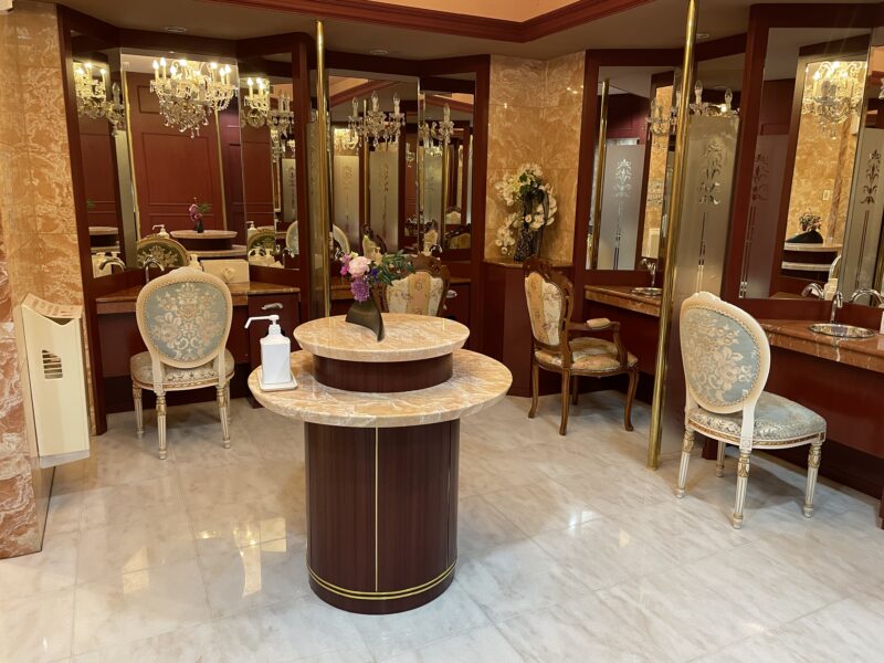 一つ一つの手洗い場にお姫様が座るような立派な椅子があるって、どゆこと?😵💫